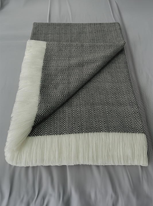 Alpaca Throw Blanket White and Gray with Lines & Fringes