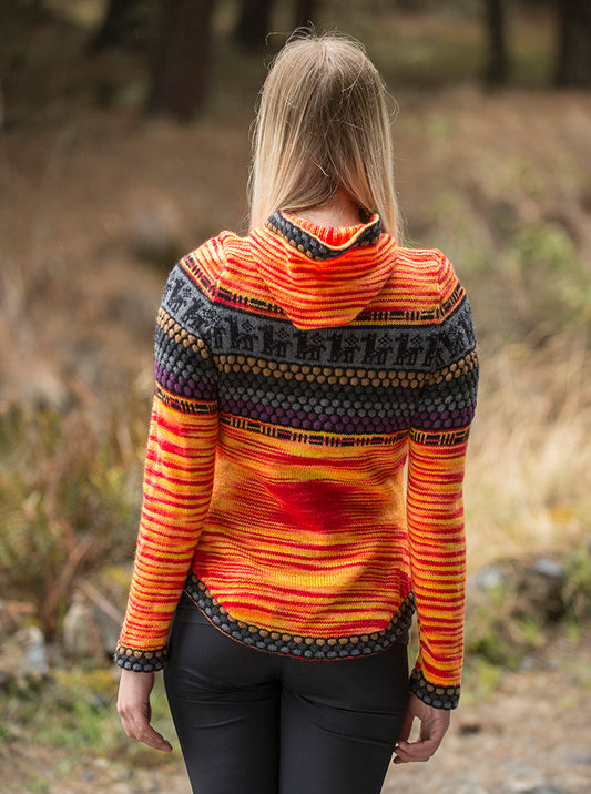 Gamboa Women Alpaca Sweater Red with Zipper and Hood