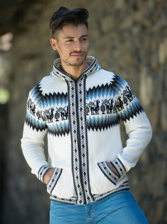 Fair Isle Gray Alpaca Zip Up Hoodie for Women