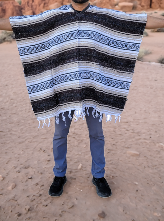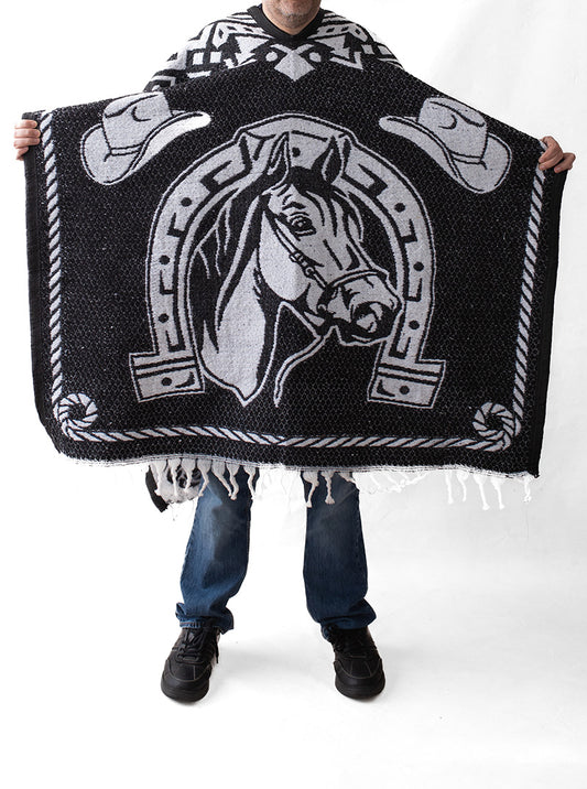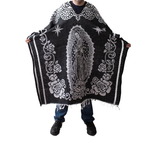 Mexican Serape Poncho for Men - San Judas - BLACK