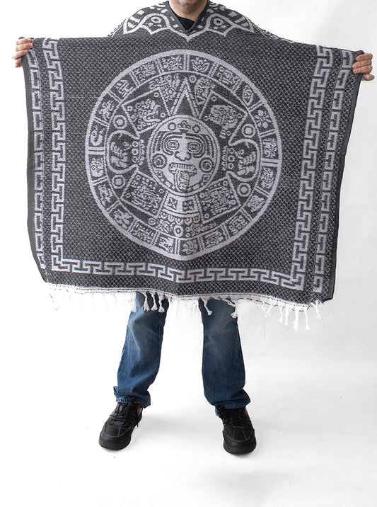Mexican Poncho for Men - Aztek Calendar - GREY
