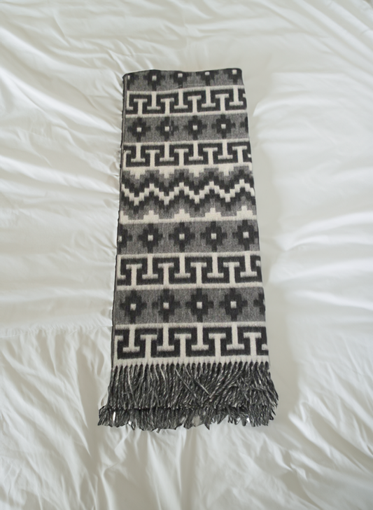Alpaca Throw Blanket White and Gray with Lines & Fringes