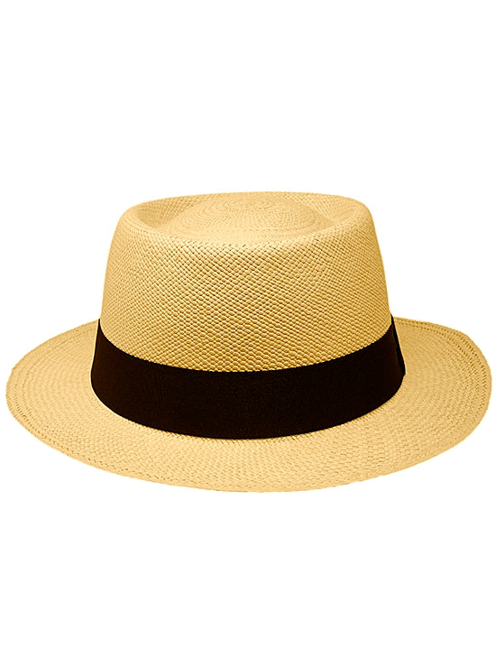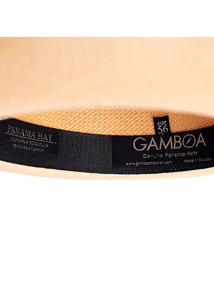 Beschreibun: Der Hut wird in Cuenca, Ecuador per Hand hergestellt. Der Panamahut Chemise (Gambler) für Herren wird aus einem festen Gewebe geflochten.