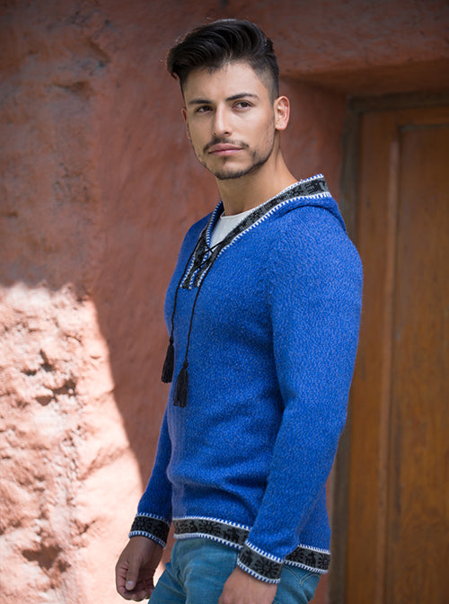 Weiß Alpaka-Pullover mit Reißverschluss und Kapuze - Andean