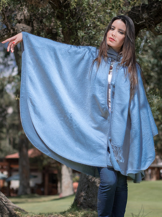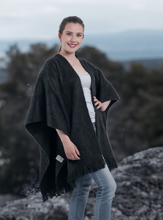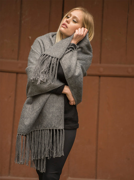 AusverkauftGrey Alpaca Shawl Open Poncho for Women