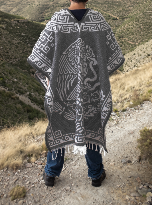 Men's Poncho in Mexican Style - Escudo Nacional - GREY