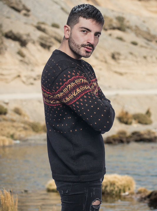 AusverkauftMulticolor Round Neck Alpaca Sweater for Men