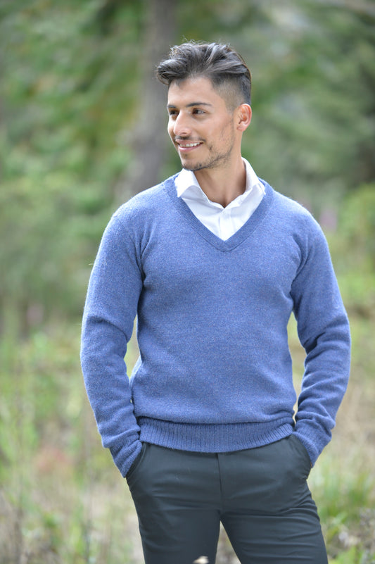 AusverkauftBlauer Alpaka-Pullover für Herren