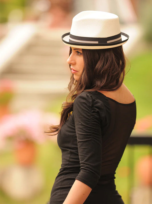 Schwarzer Panamahut für Frauen Fedora-Hut
