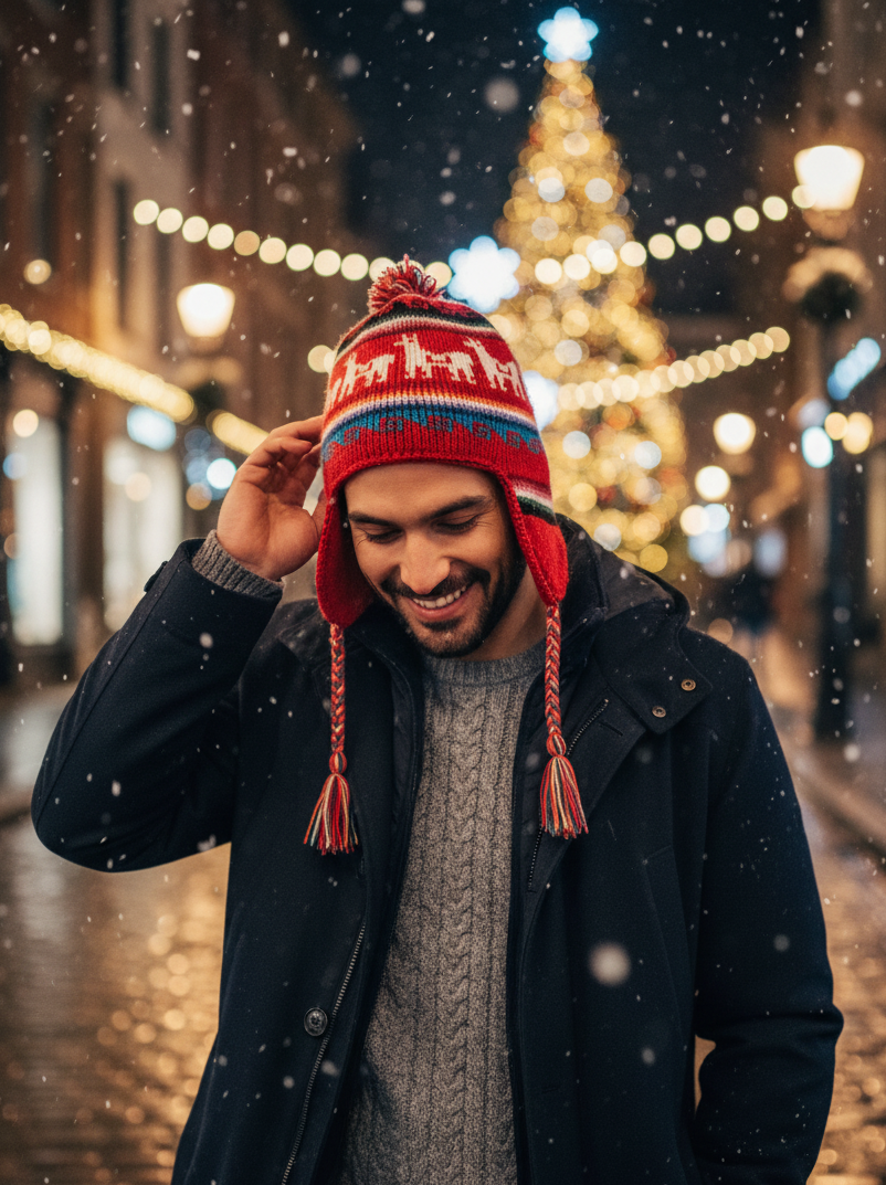 Bonito lluchu, hecho a mano por artesanos bolivianos. Muestra un diseño fino con varias rayas multicolores y figuras de llamas por todas partes. Este accesorio es versátil, informal y perfecto para cualquier actividad al aire libre durante las estaciones frías de invierno. Material: Mezcla de lana