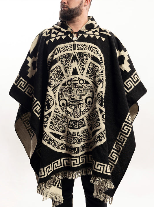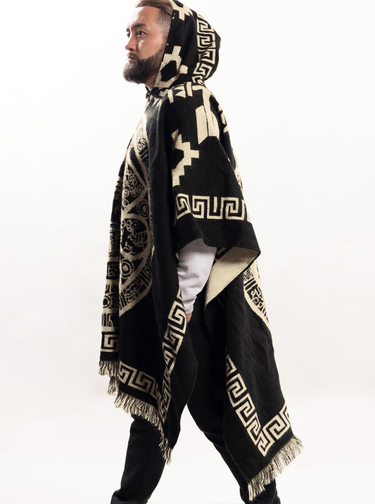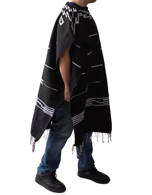 Poncho Mexicano para Hombre - Negro | Estilo Azteca