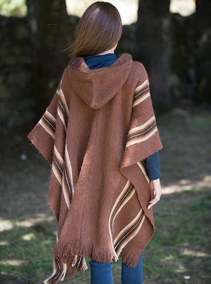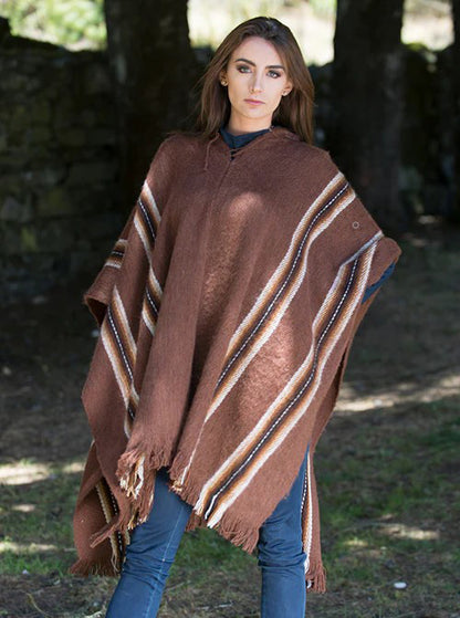Produit fait à la main par des artisans boliviens. Ce vêtement est versatile, comode, et tient chaud pendant l'hiver.On observe une élégante capuche.