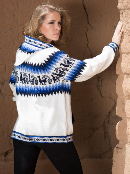 Pull Blanc d'Alpaga avec Fermeture éclair et Hood Andino