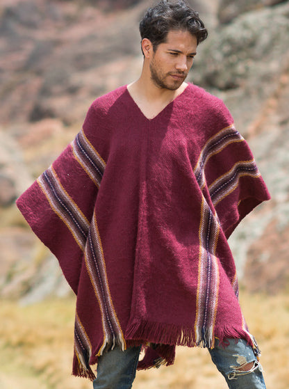 Alpaga Poncho Bourgogne pour Hommes