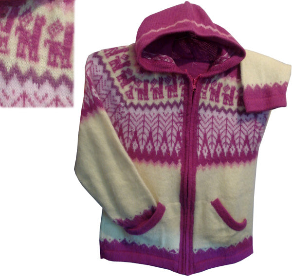 Casual e differente, questo cardigan con cappuccio ha magnifici motivi andini in bianco e grigio e utili tasche.