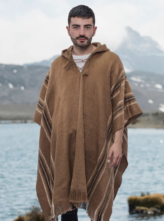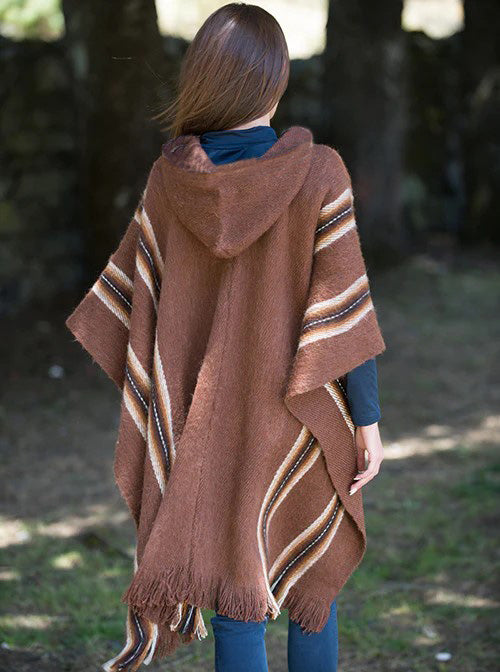 Poncho in alpaca con cappuccio marrone - Montebajo