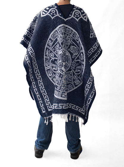 Mexican Poncho for Men - Aztek Calendar - BLUE