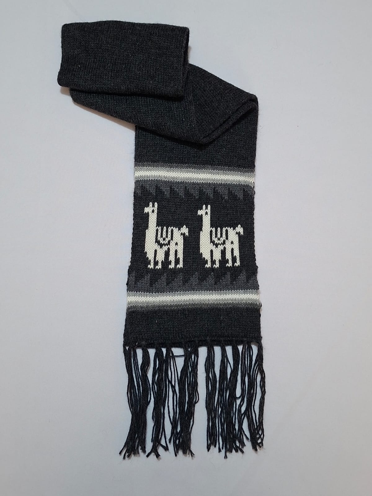 Delicato prodotto boliviano fatto a mano. Morbidissimo e caldo, perfetto per l'inverno, con disegni di lama e frange eleganti.