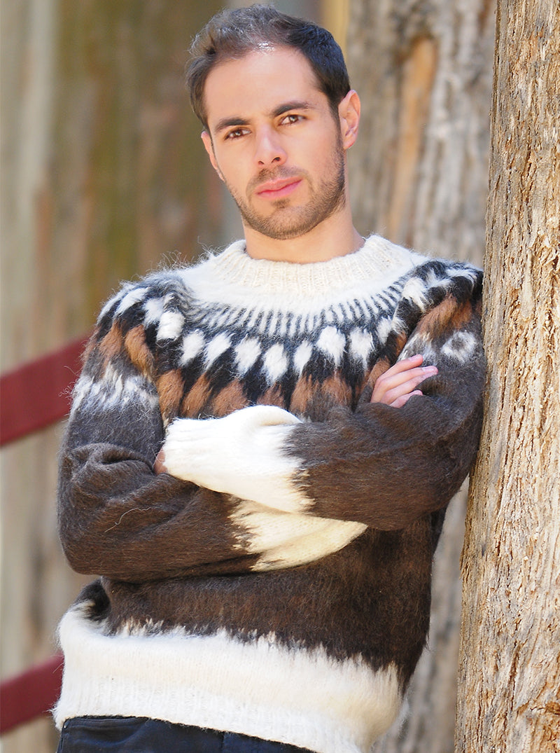 Descrizione: Maglia rustica lavorata a mano da artigiani boliviani. Ha uno stile casual e rustico. Questo capo è abbastanza spesso da combattere anche gli inverni più freddi. Presenta un design andino intorno al collo, ai polsini e al fondo.