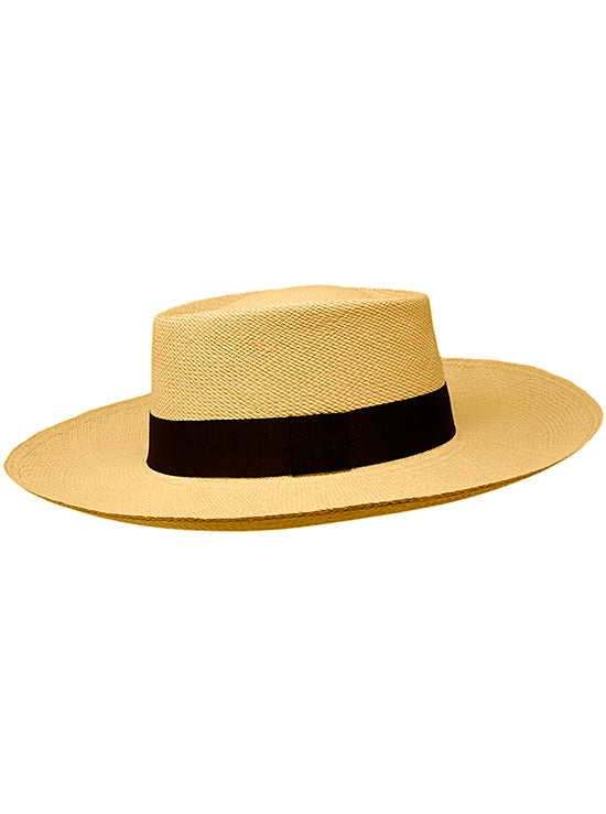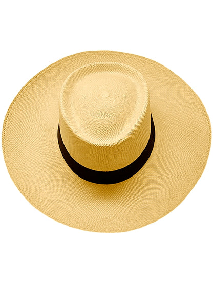 Descrizione: Un cappello confezionato a mano nella città di Cuenca, Ecuador. Questo cappello di panama modello Chemise (Gambler) da Uomo versatile e di tessuto consistente.