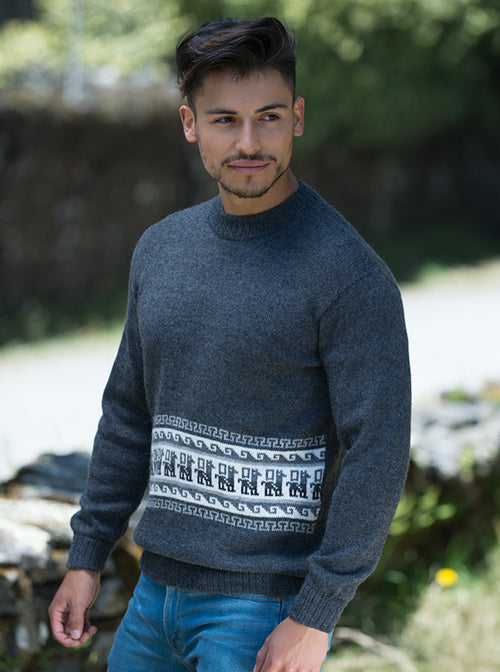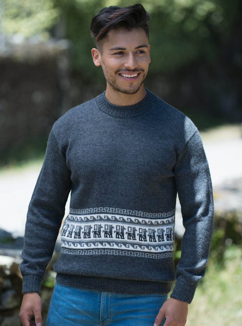 Gray sweater made with 100% alpaca wool. This sweater has beautiful white llamas as main design. Comfortable, warm and soft, this sweater will keep you warm during the winter.Overview: